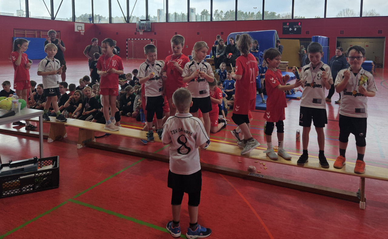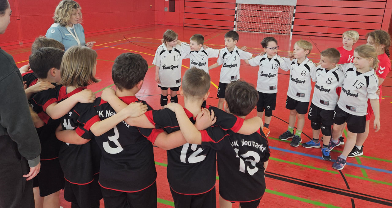 Die DJK Neumarkt 2 und der TSV Winkelhaid 2 wurden von den Mini 2 zum Kräftemessen auf das Parkett gebeten. Im Spiel 1 gegen die Neumarkter war Verlass auf eine gute Torwartleistung und eine gut gestaffelte Abwehr. Es wurde der Ball sicher und konzentriert nach vorne transportiert und ein ums andere Mal im Tor der DJK'ler untergebracht. Auch nach Ballverlust wurde schnell umgeschaltet und dadurch konnten viele Bälle zurückerobert werden. Dasselbe Bild zeigte sich auch gegen den Nachbarverein TSV Winkelhaid: Durch sicheres Passspiel und gute Chancenauswertung wurde auch diese Partie am Ende eine klare Angelegenheit für die 04er.