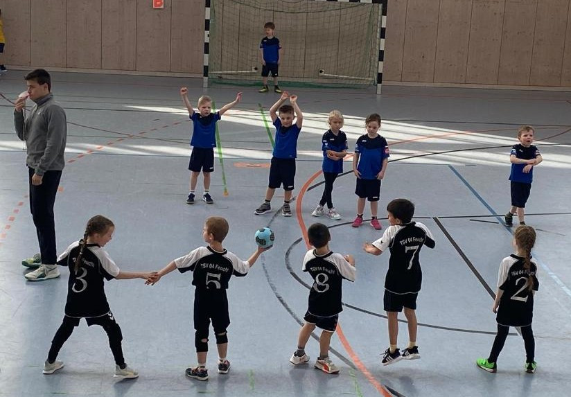 Im zweiten Spiel ging es gegen die HSG Erlangen/Niederlindach III. Die Feuchter Kinder hatten zunächst großen Respekt vor den körperlich deutlich größeren Gegnern, die teilweise bis zu zwei Köpfe größer waren. Dadurch fehlte in der ersten Halbzeit – ähnlich wie bereits im Spiel der vergangenen Woche – teilweise der Mut in der Abwehr, sodass der Gegner in Führung ging.